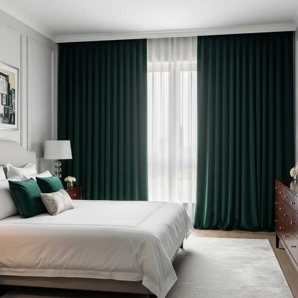 Velvet drapes are the ultimate in luxury. Beyond their rich, light-absorbing sheen, the dense pile of the fabric provides excellent thermal and acoustic insulation, keeping your bedroom quiet and warm.