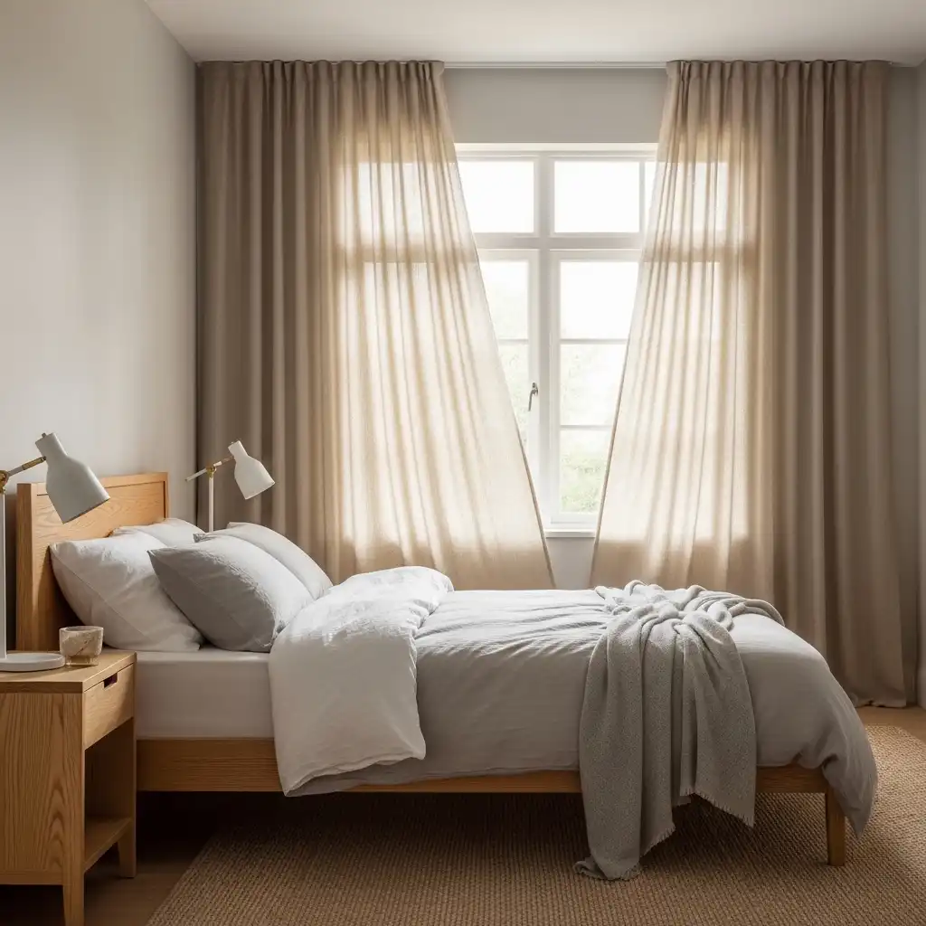 Linen curtains offer a relaxed, organic texture that filters light beautifully. Their slight “imperfection” and breathability make them the perfect choice for a master suite that prioritizes a calm, airy, and natural aesthetic.