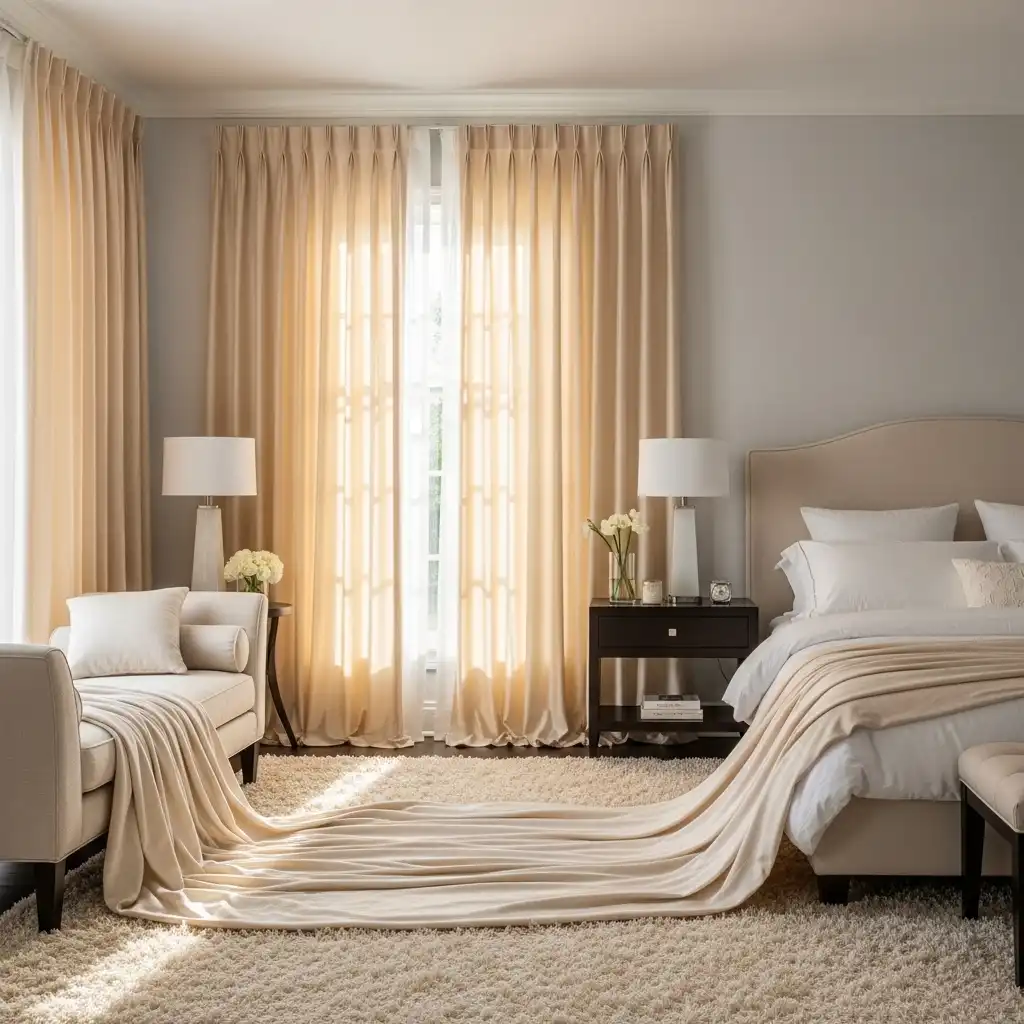 Paint your walls and choose curtains in the exact same shade. This “color-drenching” technique minimizes visual distraction, making the room feel incredibly serene, expansive, and unified.