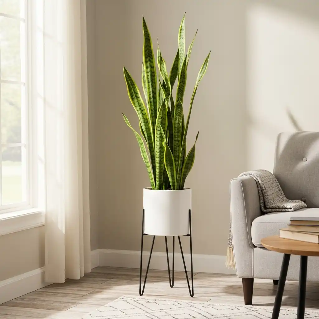Elevate your greenery with “bullet” planters or ceramic pots on tripod wire stands. This adds height to your indoor garden while maintaining the retro-industrial vibe.