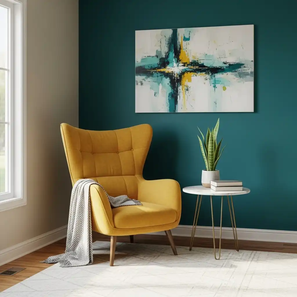 Embrace the era’s favorite colors. Use a mustard yellow armchair against a teal wall to create a high-contrast, sophisticated look that feels authentically vintage.