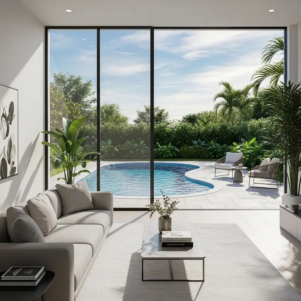 Maximize the “indoor-outdoor” connection with massive glass panels. This hallmark of MCM architecture brings the garden into the living space, making nature your primary decor.