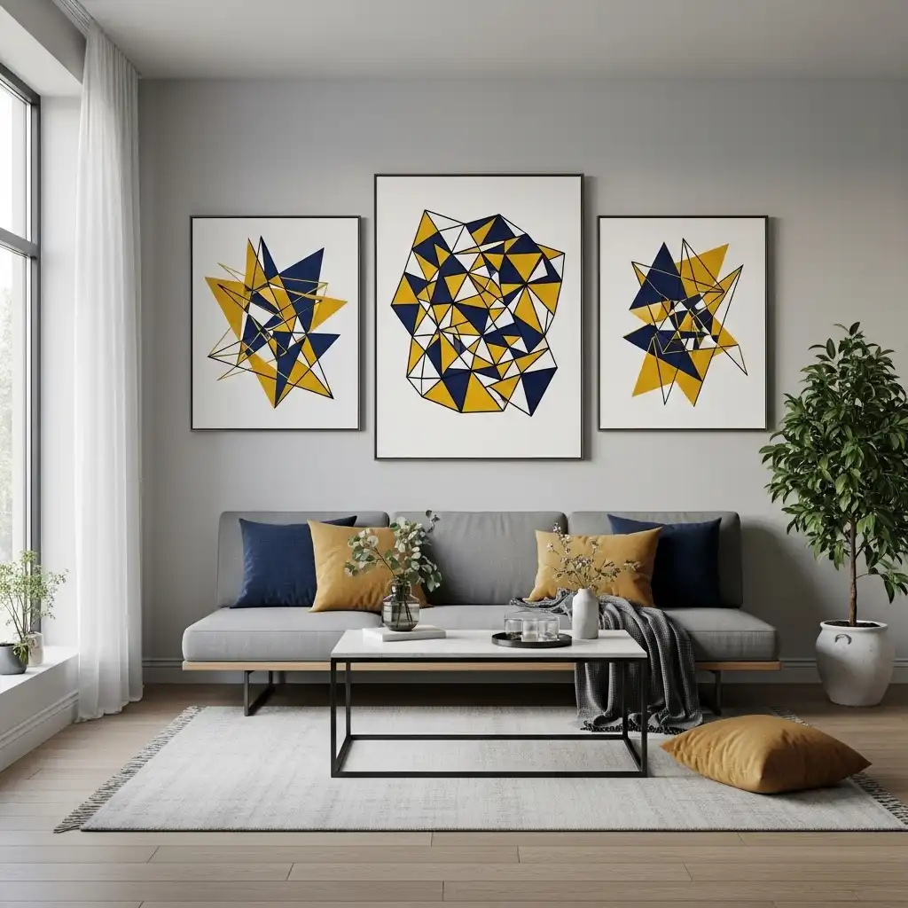 Decorate with bold, abstract geometric prints in primary colors. This adds a graphic, high-energy element that perfectly complements the clean lines of the furniture.