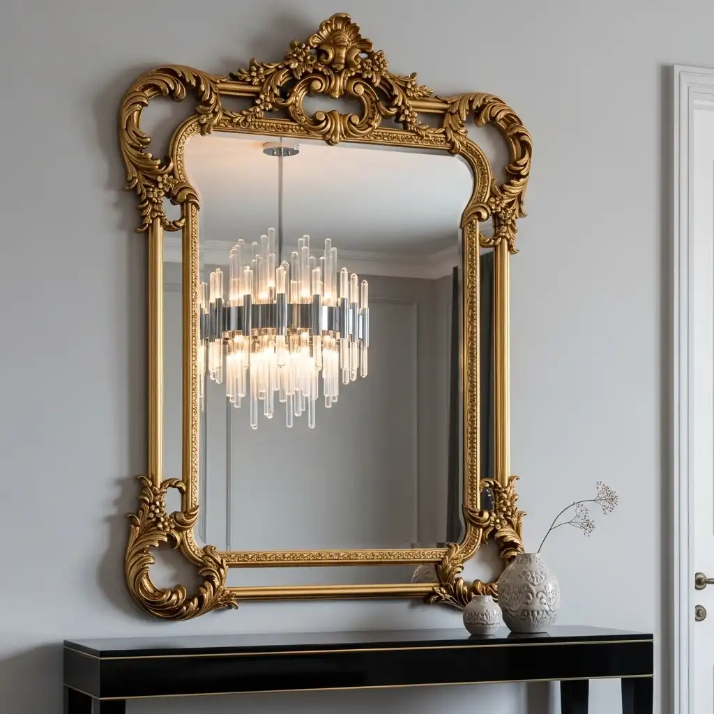 13. Ornate Mirrors on Minimalist Consoles