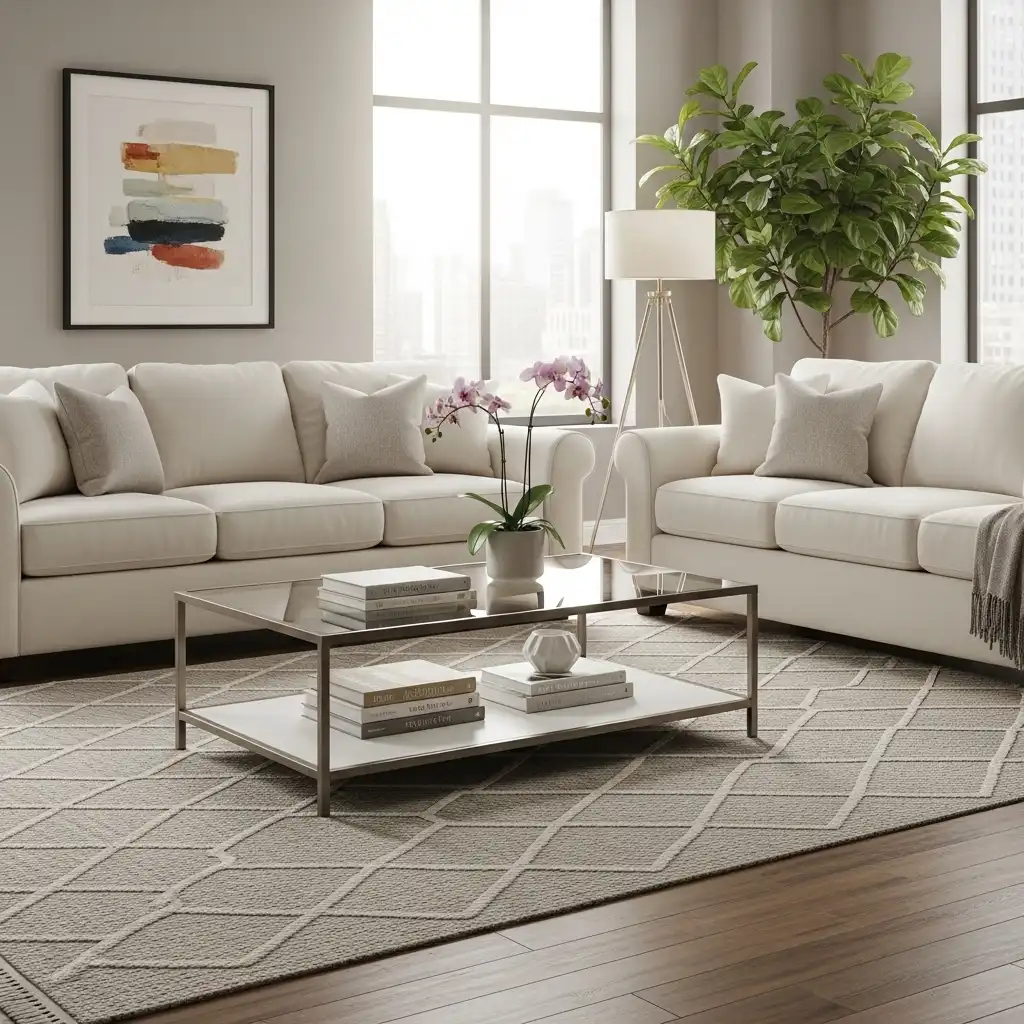 Embrace the classic rule of symmetry by placing two identical sofas or armchairs facing each other. This structured arrangement feels formal and balanced, regardless of the furniture’s modern style.