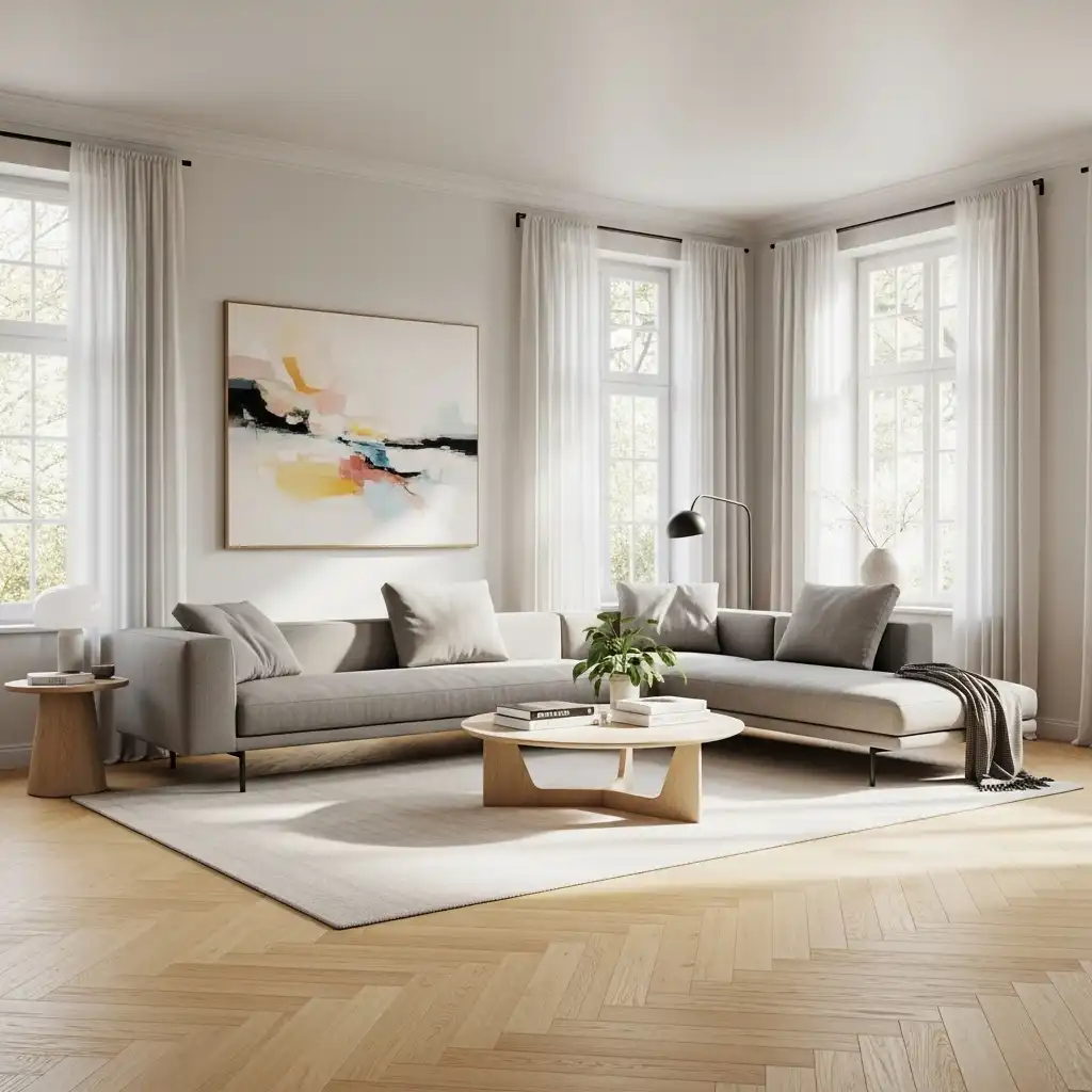 Use a classic chevron or herringbone pattern for your wood floors, but in a modern light oak or “greige” finish. It adds historical depth while keeping the room bright and current.