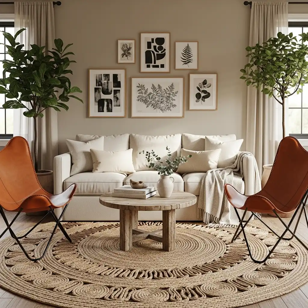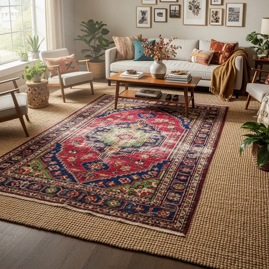 Layer a large jute rug under a smaller, patterned vintage rug. This adds an earthy, tactile base to the room and reinforces the “natural materials” philosophy of farmhouse design.