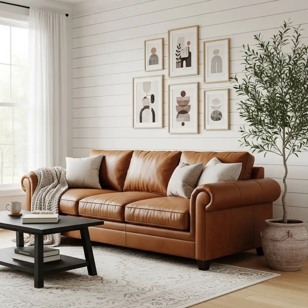 5. Cognac Leather and Neutral Linens