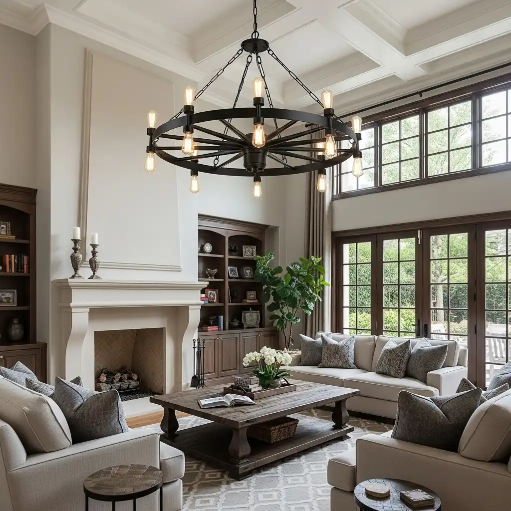 3. Oversized “Wagon Wheel” Chandeliers