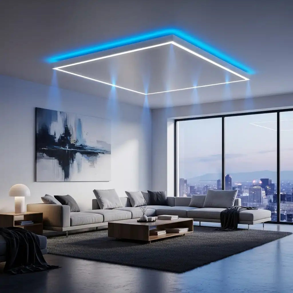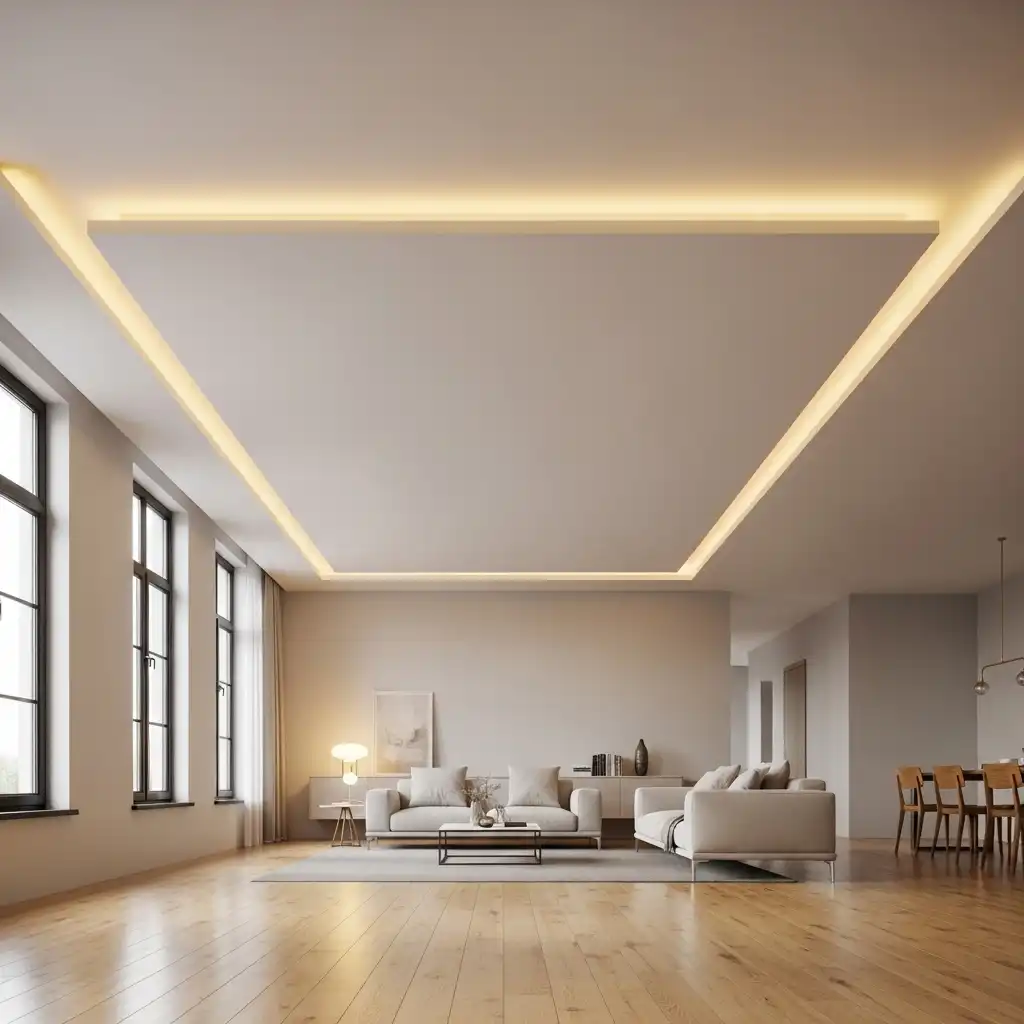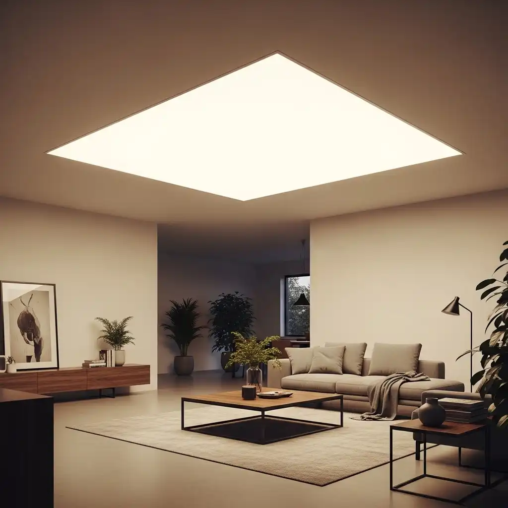 Install large, translucent panels that cover the entire ceiling or a large section. This creates a soft “skylight” effect, bathing the living room in a perfectly even, shadowless glow.
