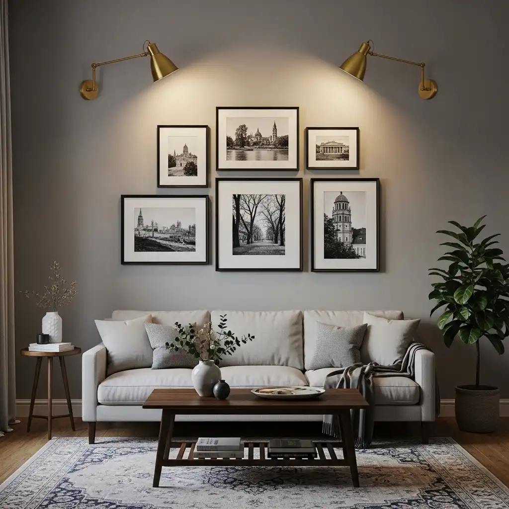 Replace traditional table lamps with wall-mounted brass or matte black sconces. This adds an architectural element to the walls and provides focused mood lighting.