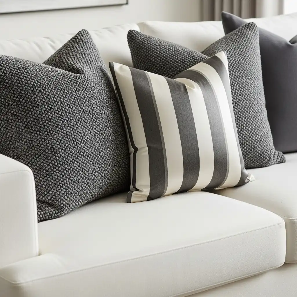 Incorporate pillows with sharp geometric patterns or bold textures like bouclé and velvet. Use a monochromatic palette to maintain a sophisticated, modern edge.