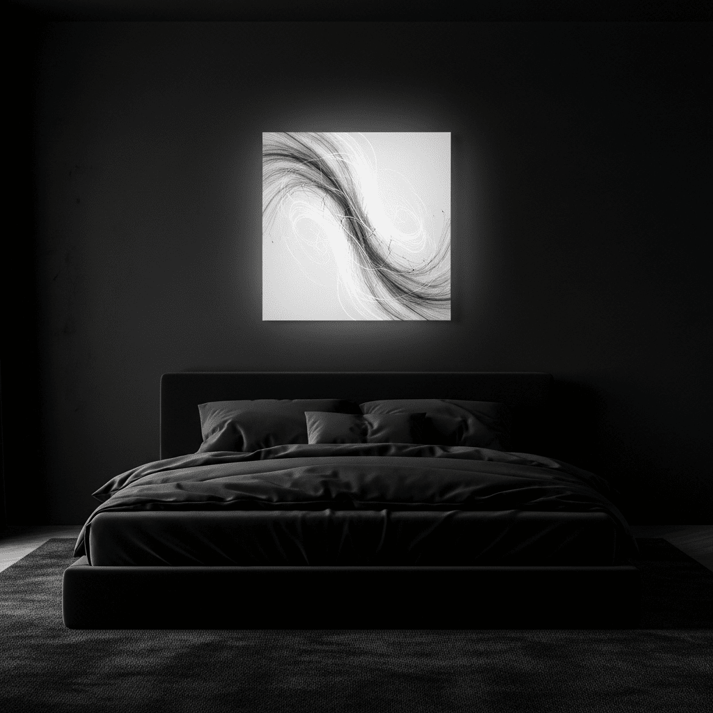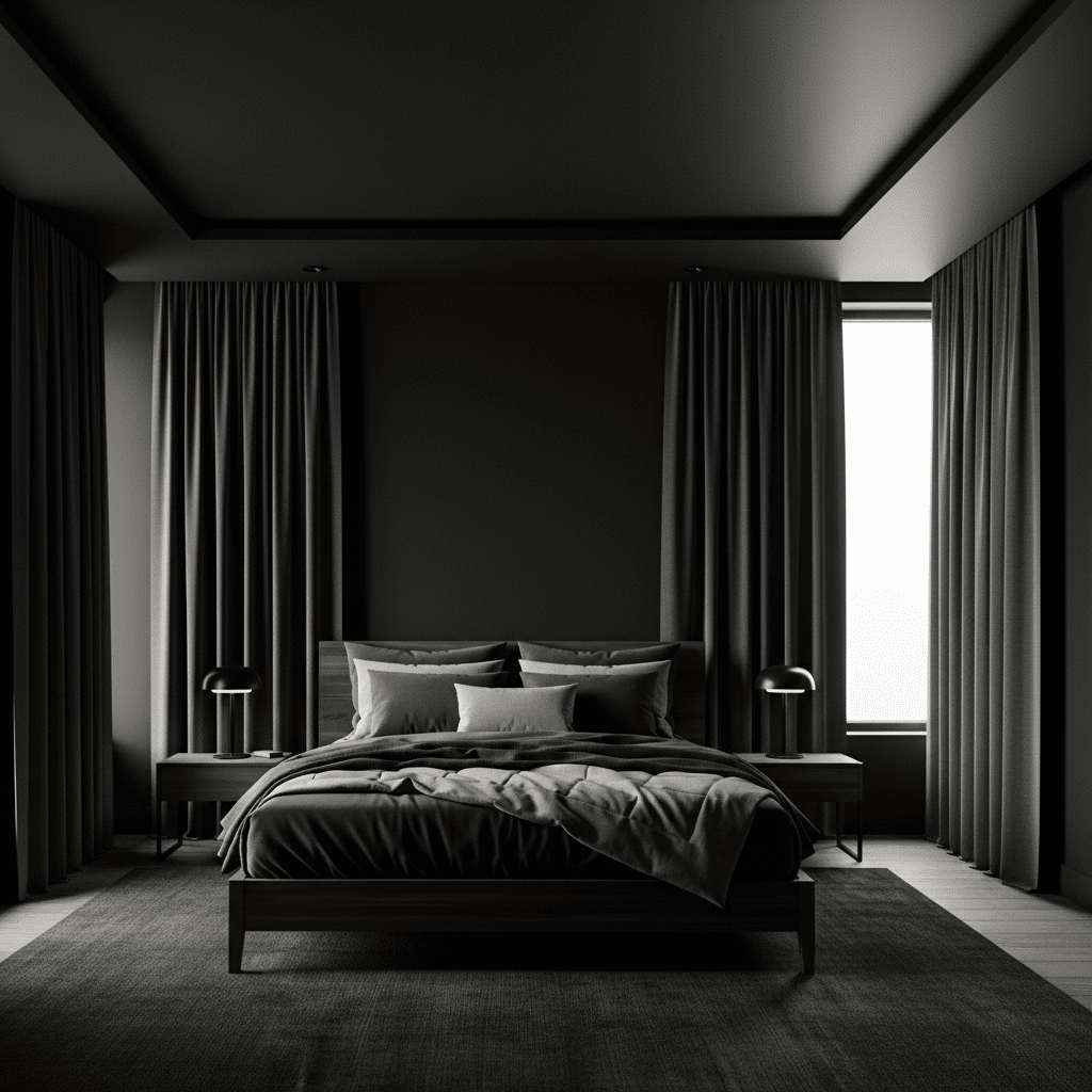 A strictly black-and-white room where black is the dominant color (80%). This creates a sharp, cinematic look that is incredibly modern and bold.