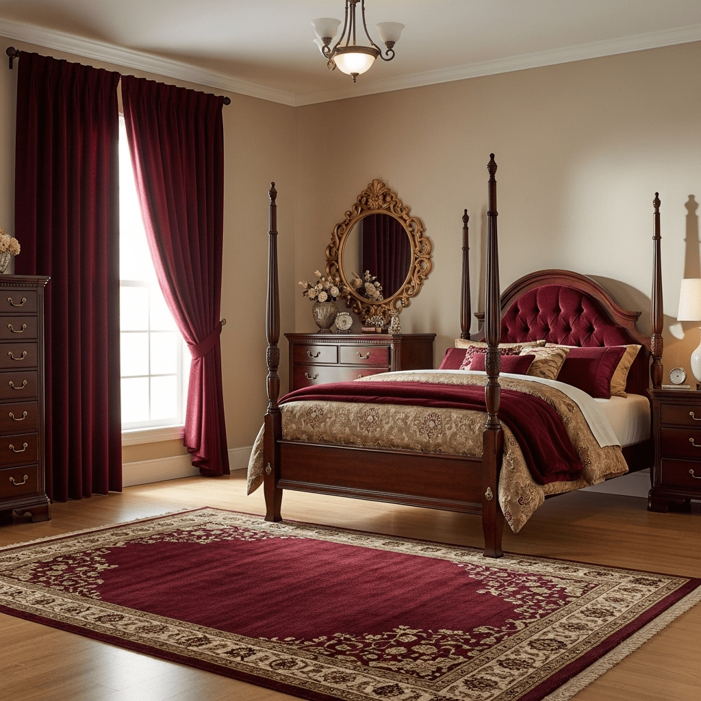 Burgundy and wine tones add a layer of heat and sophistication. Using these shades for curtains or rugs provides a rich, grounded feel to a dark-themed room.