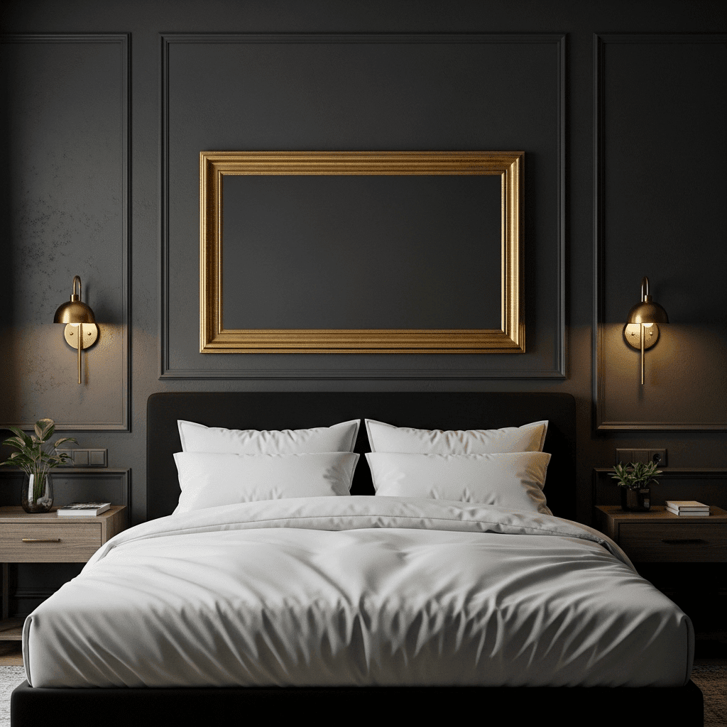 In a dark room, brass or gold fixtures act like jewelry. The warm metal reflects soft light, preventing the moody palette from feeling too heavy or cold.