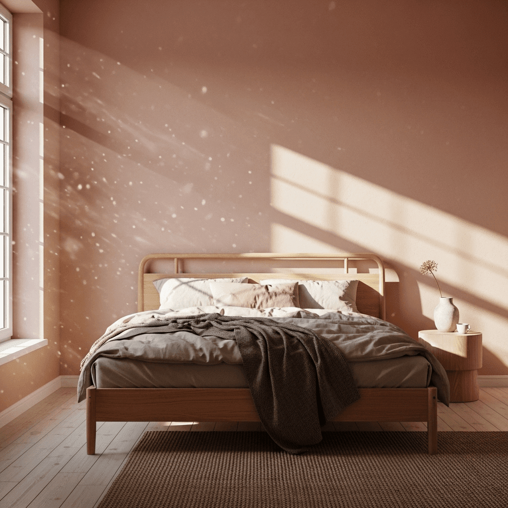 Inspired by Mediterranean villas, this design uses a matte, textured plaster finish in a muted clay-pink. It feels organic and grounded, especially when paired with natural wood and linen textiles.