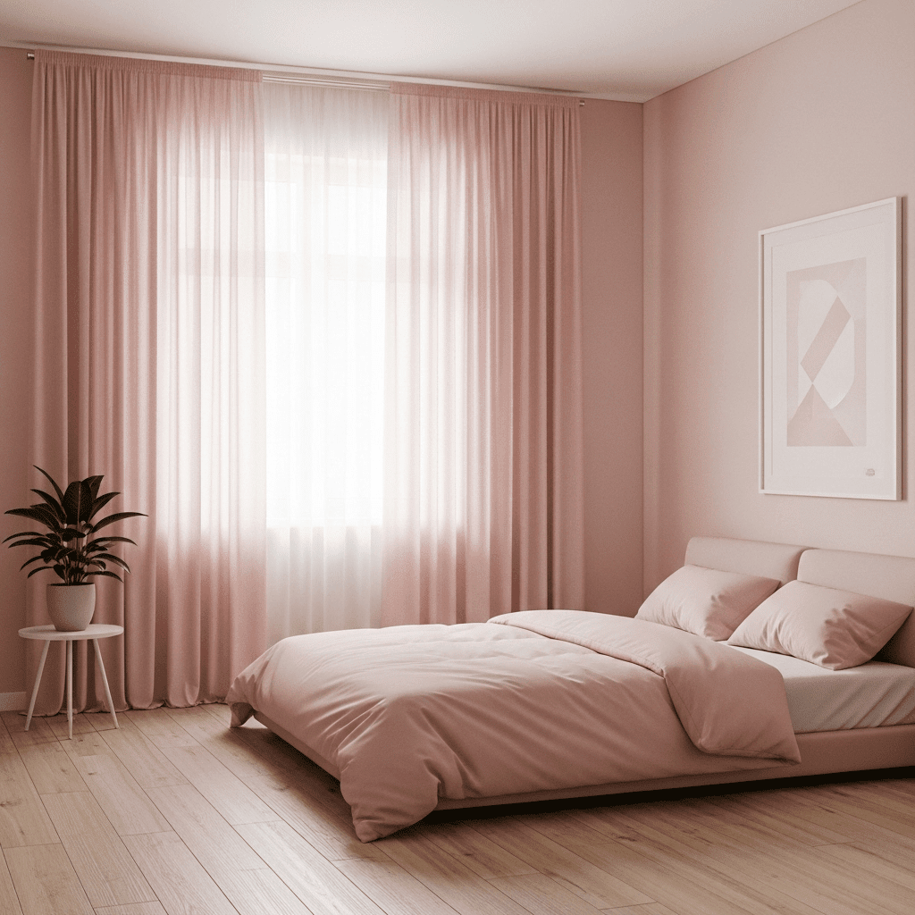 Use varying shades of the same pale blush pink for the walls, bedding, and curtains. This monochromatic approach creates a seamless, “cloud-like” environment that is incredibly restful.
