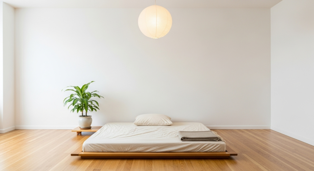 The 70s minimalism interior bedroom represented an alternative aesthetic focused on simplicity and intentional design. Influenced by Japanese aesthetics and Scandinavian modernism, minimalist 70s bedrooms featured low platform beds without headboards, neutral color palettes dominated by white, beige, and natural wood tones, and sparse decoration with carefully selected objects. Clean lines, uncluttered surfaces, and hidden storage maintained visual simplicity. Natural materials like cotton, linen, and unstained wood provided warmth without busy patterns. This restrained approach offered calm retreats contrasting with the decade’s more common maximalist tendencies.