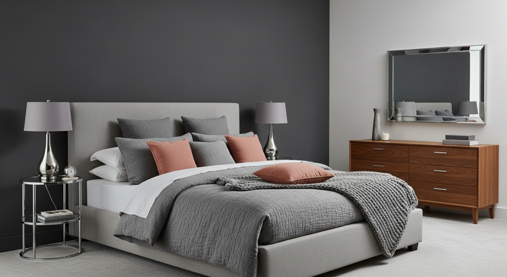 While the phrase “50 shades of grey bedroom interior design” evokes modern associations, grey was actually a sophisticated choice in mid-century design. Monochromatic grey schemes in 1950s bedrooms created elegant, mature spaces that balanced cool minimalism with warm textures. Designers layered charcoal, slate, dove grey, and silver tones with natural wood accents and pops of color like yellow or coral. This timeless approach combined modern simplicity with cozy livability, proving grey’s versatility long before contemporary trends. Textured fabrics, varied finishes, and metallic accents prevented grey schemes from feeling flat or cold.