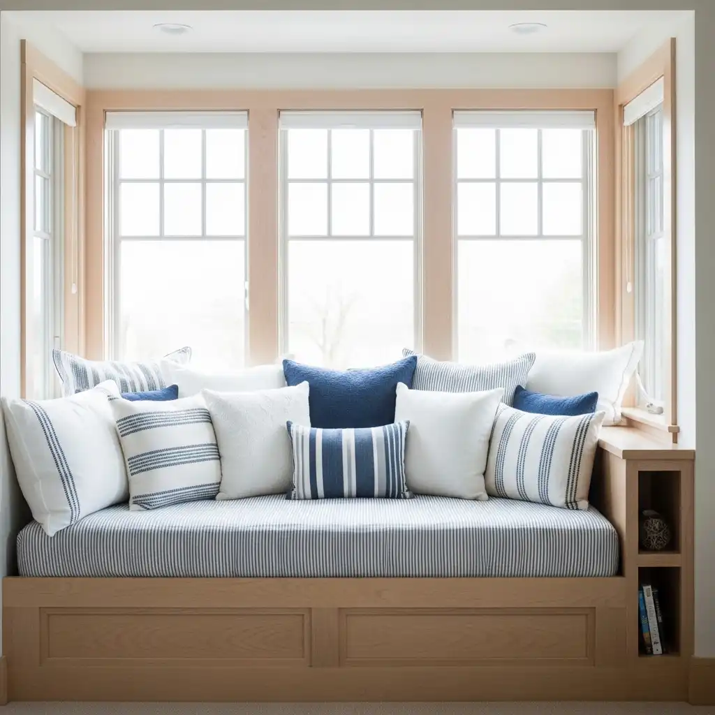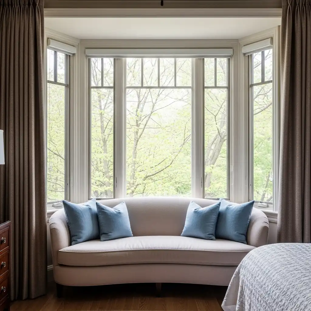 Utilize a bay window by placing a curved settee or “love seat” that follows the architectural lines of the glass. This maximizes natural light and provides a panoramic view of the outdoors.