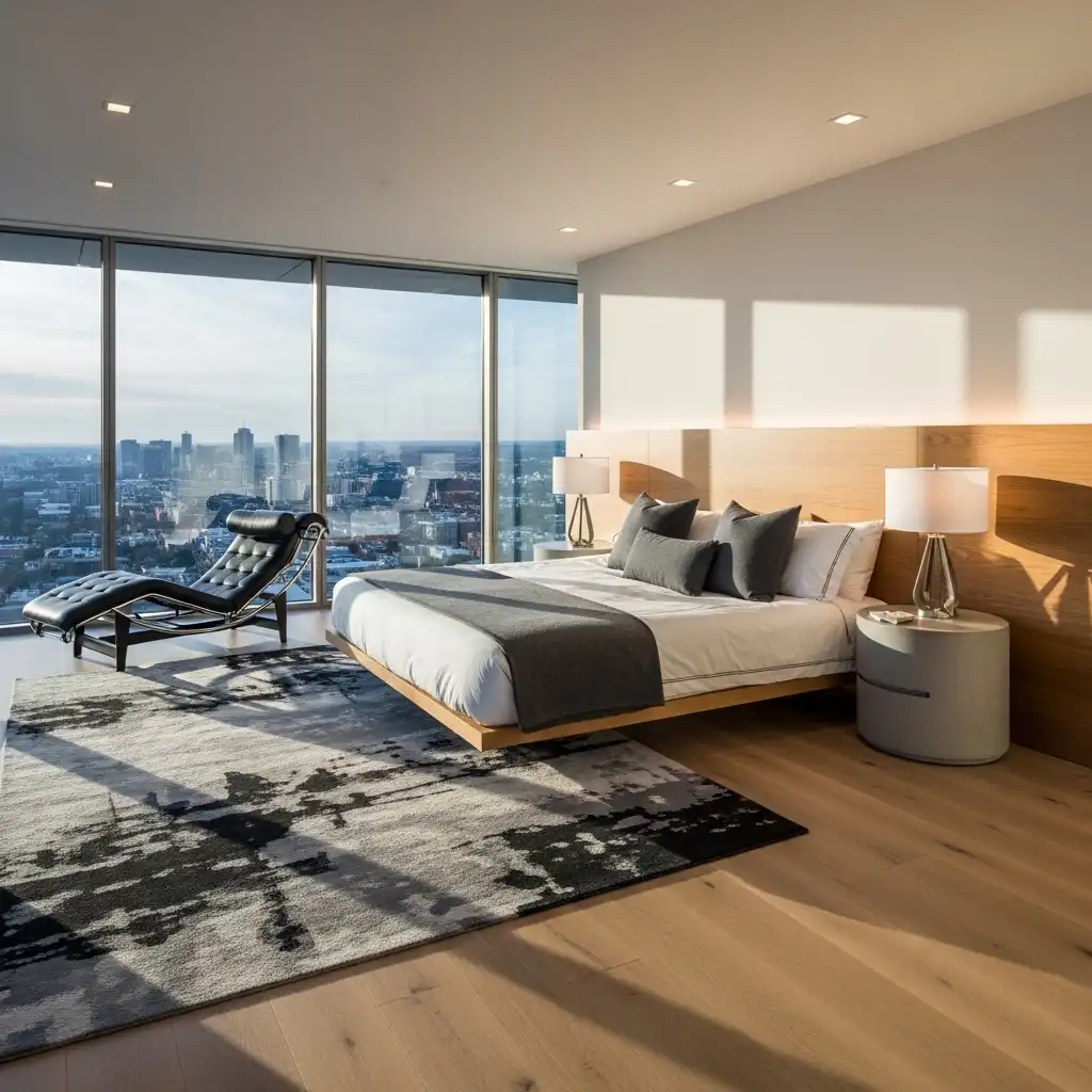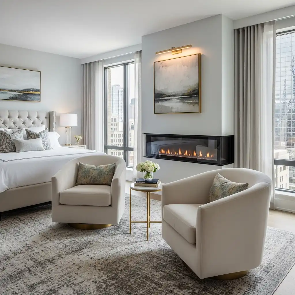 Combine a sleek desk with a comfortable lounge chair nearby. This allows the master suite to function as a private office by day and a relaxing retreat by night.