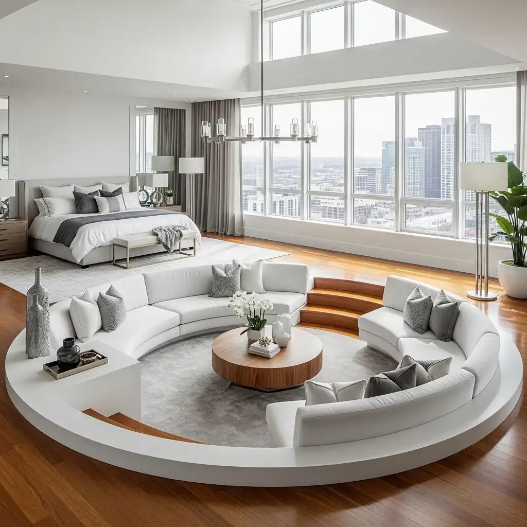 For a modern architectural twist, incorporate a sunken seating area. This multi-level approach physically separates the “rest” zone from the “social” zone without the need for walls.