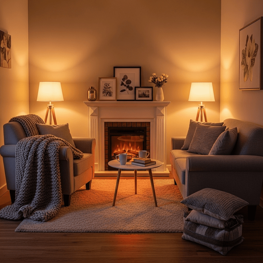 Pleasant Aromas: Candles, essential oils, or baking scents add olfactory warmth completing multi-sensory coziness.