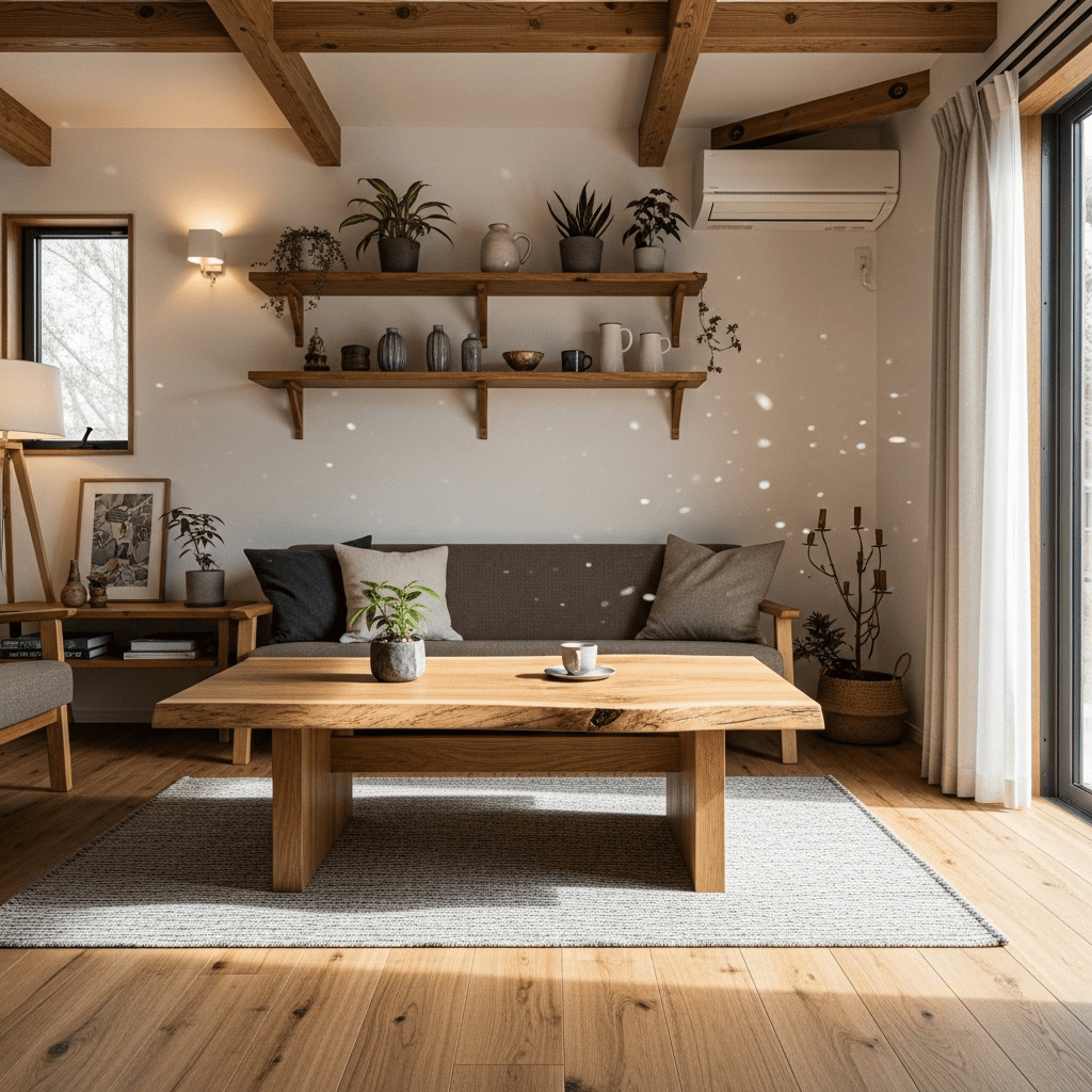 Natural wood furniture, exposed beams, or wooden shelving adds organic warmth that manufactured materials cannot replicate in cozy small rooms.