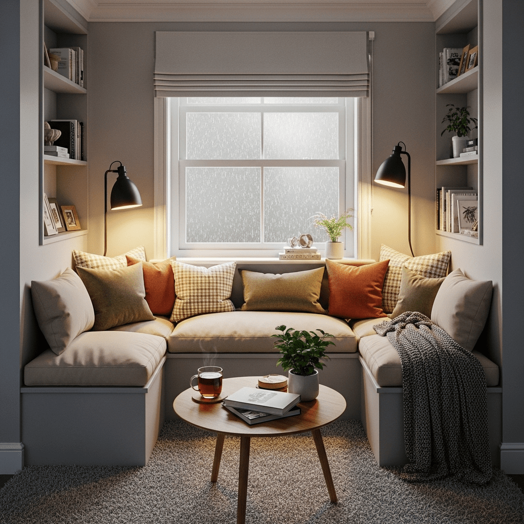 Window seats or built-in banquettes create nest-like, enclosed seating perfect for cozy small living room corners.