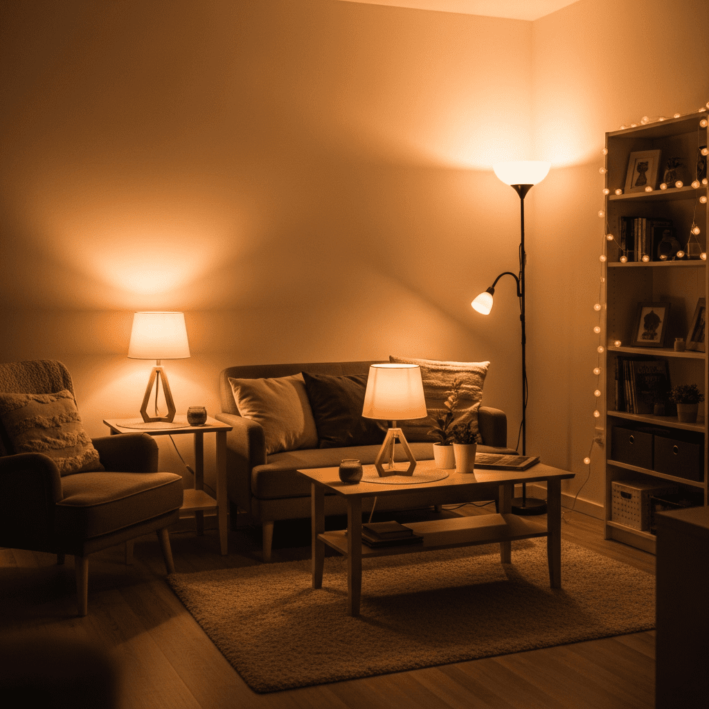 Warm Bulb Temperature: Use 2200-2700K bulbs creating golden, amber glows rather than cool daylight temperatures.