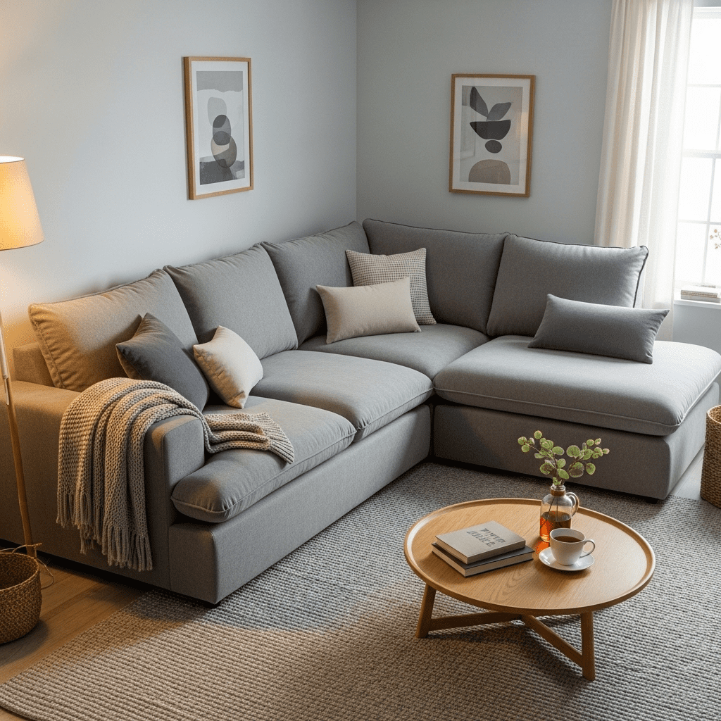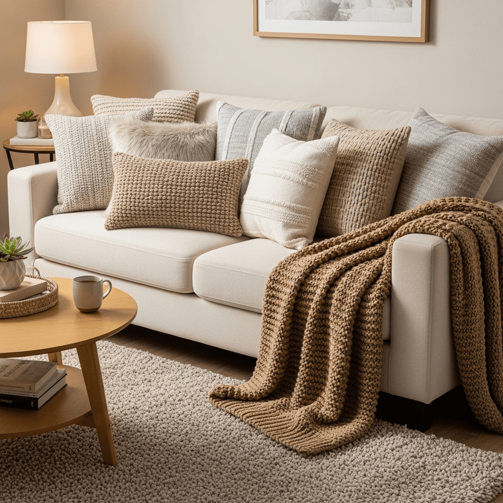 Cushions: Generous pillow quantities (8-12 on average sofas) in mixed sizes and fabrics add visual and physical softness.
