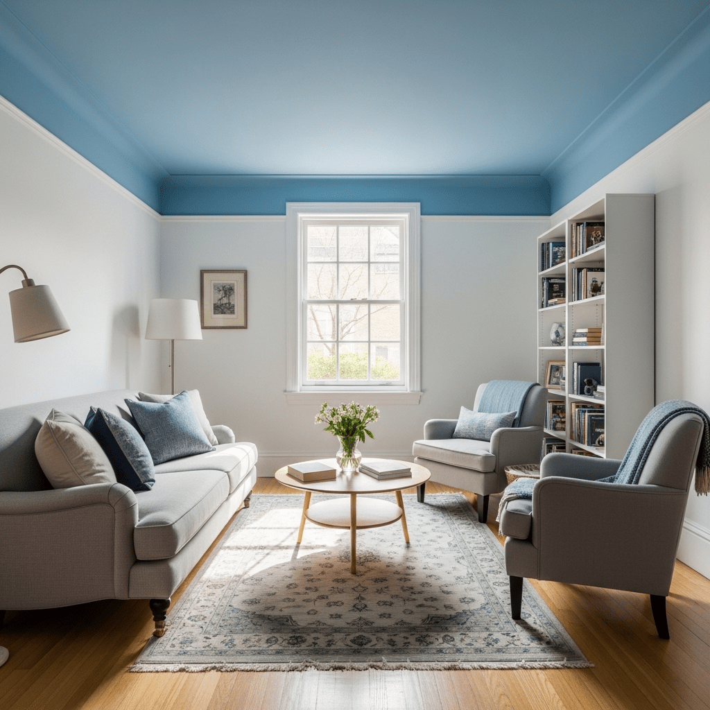 Paint your ceiling a very light, reflective shade or add a subtle wallpaper. This “fifth wall” decor draws the eye up and makes the entire volume of the room feel utilized and grand.