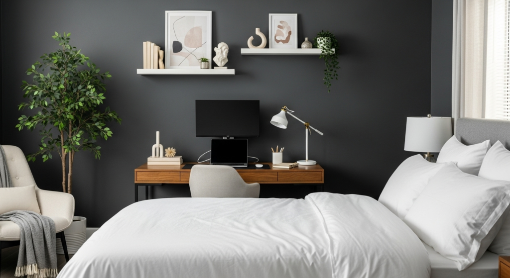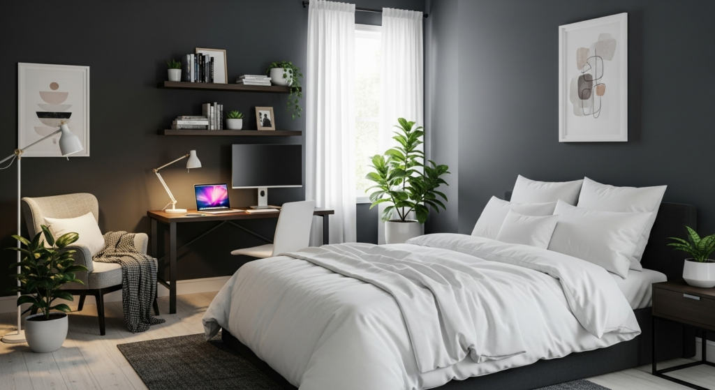 Choose sophisticated, timeless color schemes—charcoal and white, sage green and beige, or navy and cream. Invest in quality furniture pieces that will last beyond this life stage. A comfortable, adult-sized bed (full, queen, or king) is worth the investment in sleep quality.