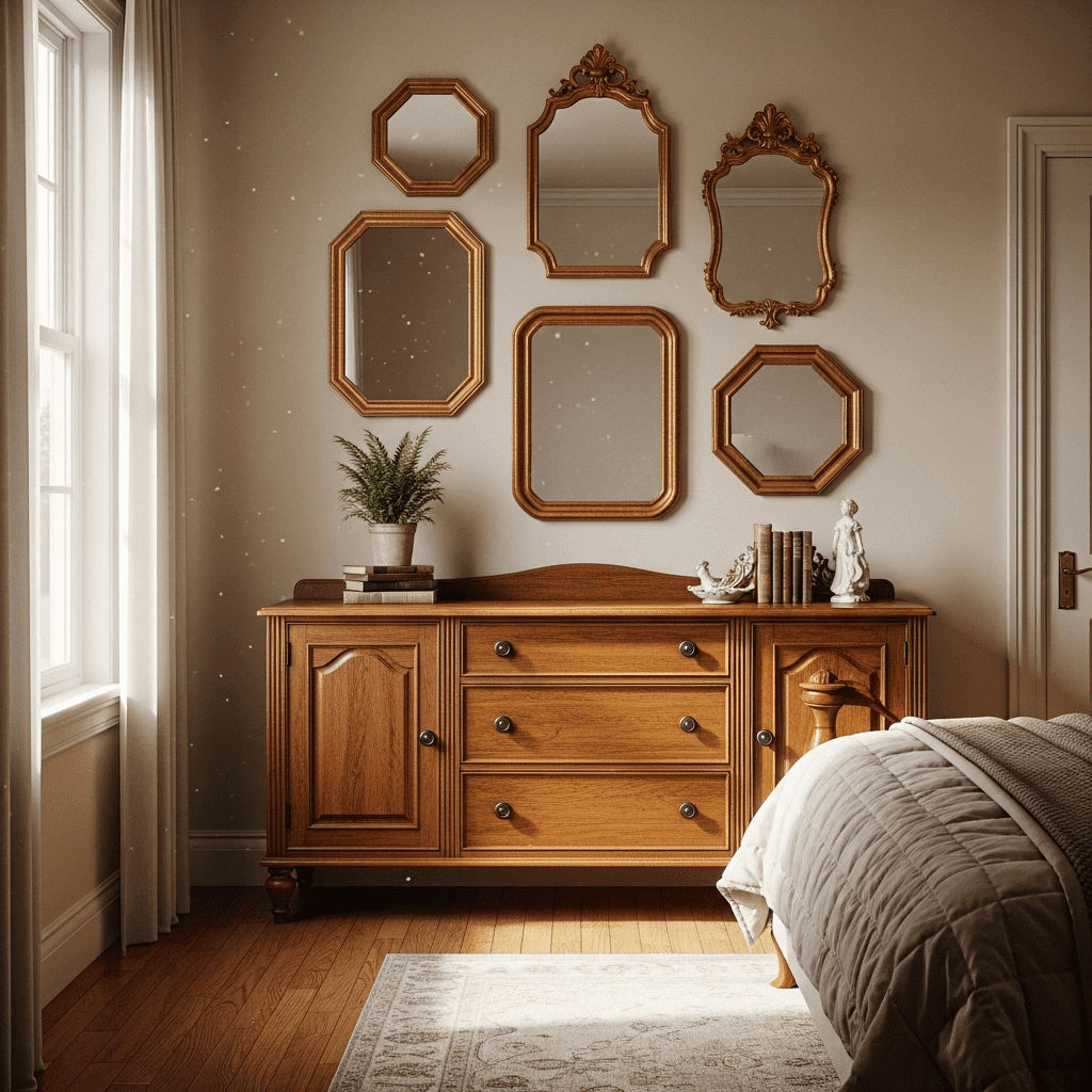 Collect vintage oval mirrors with ornate gold frames and hang them in a cluster. They bounce light around the room and act as a stunning, sculptural alternative to traditional wall art.