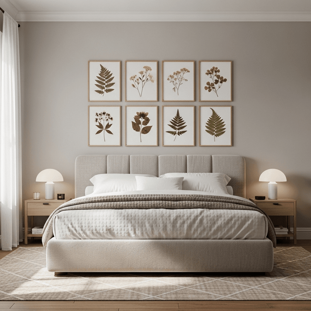 Frame dried ferns, wildflowers, or herbs in simple wooden frames. This “naturalist” vintage look is affordable and adds an educational, antique charm to the walls.