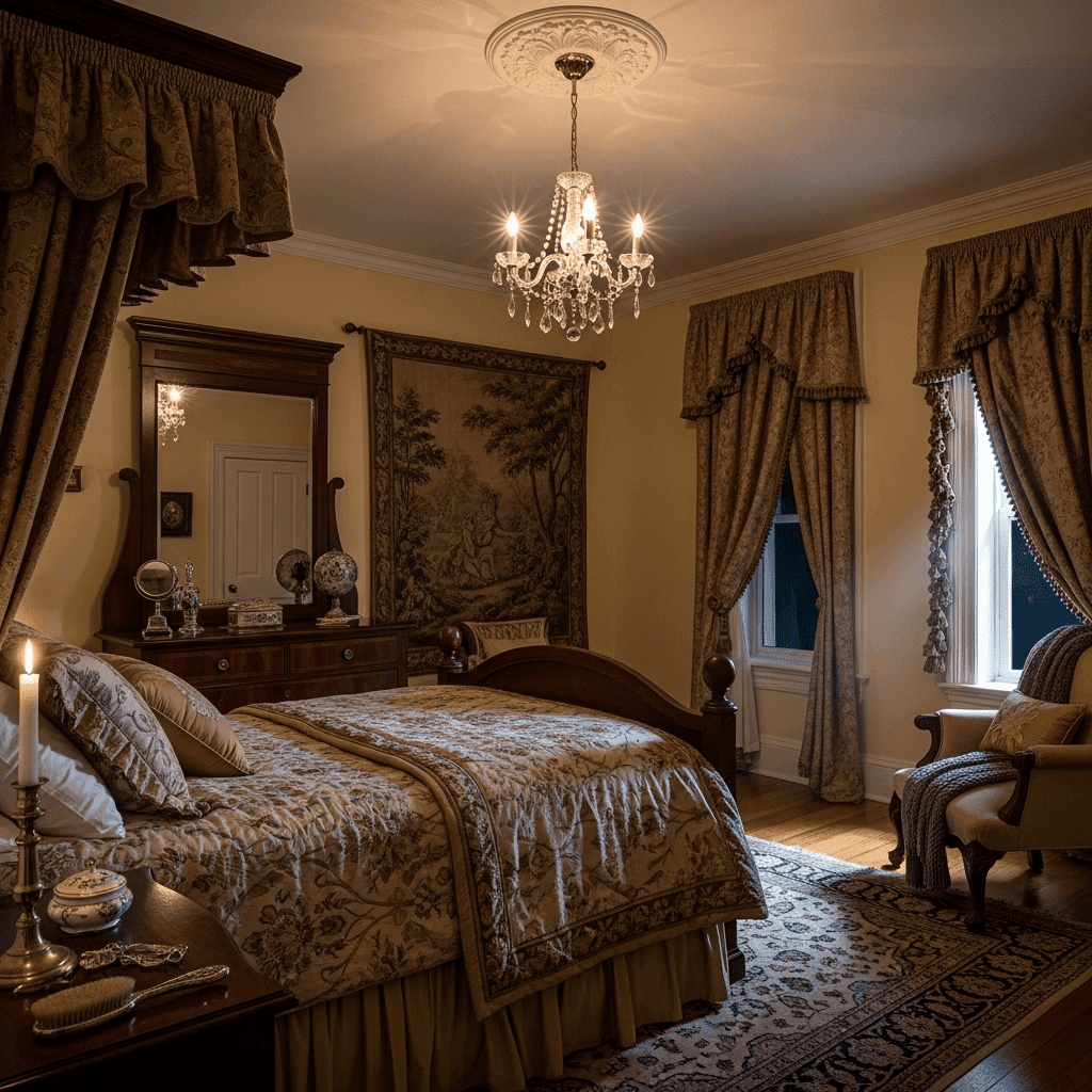 Replace standard ceiling lights with a small vintage crystal or glass bead chandelier. The way the light refracts through the glass adds a magical, evening-ready sparkle to the room.